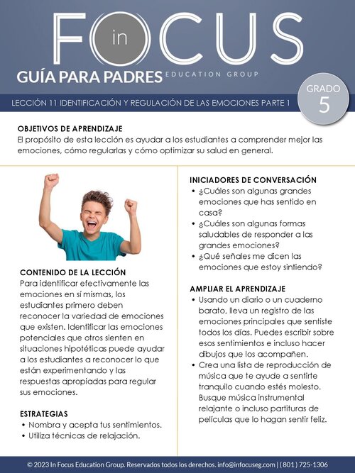 El propósito de esta lección es ayudar a los estudiantes a comprender mejor las emociones, cómo regularlas y cómo optimizar su salud en general. En esta lección, practicaremos la identificación de diferentes emociones y exploraremos formas saludables de reaccionar ante esas emociones. Practicaremos técnicas de atención plena y juegos de roles en situaciones de alta intensidad en las que algunos estudiantes tienden a reaccionar de forma exagerada.
