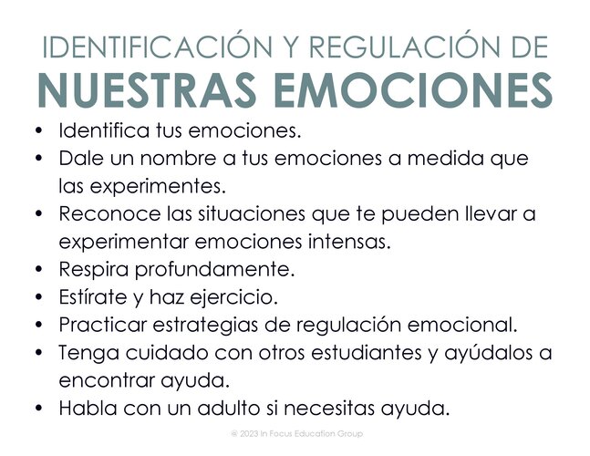 Sin embargo, el hecho de que podamos “sentir” cualquier emoción no significa que podamos reaccionar de la manera que nos gustaría. Estaremos explorando algunas estrategias diferentes que nos ayudan a procesar y regular nuestras emociones de manera saludable y apropiada.